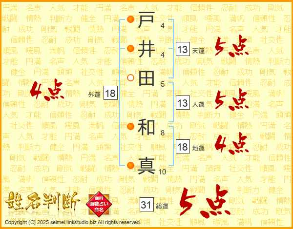 戸(4画)井(4画)田(5画) 和(8画)真(10画)