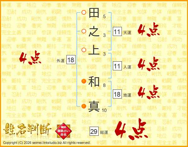 田之上和真さんの総運は29画の4点!