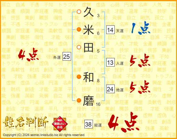 久米田和磨さんの総運は38画の4点!