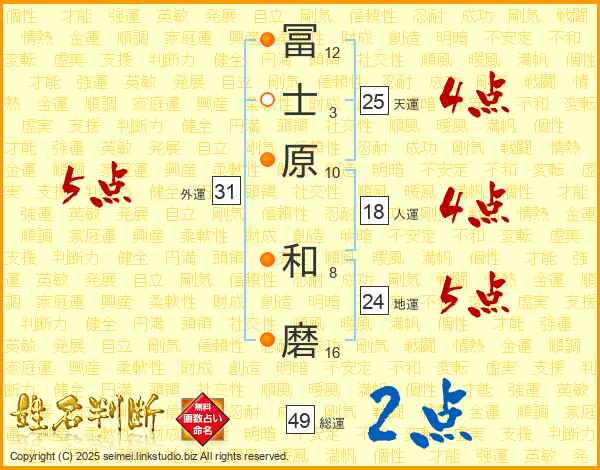冨(12画)士(3画)原(10画) 和(8画)磨(16画)