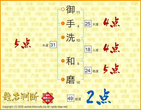 御手洗和磨さんの総運は49画の2点!