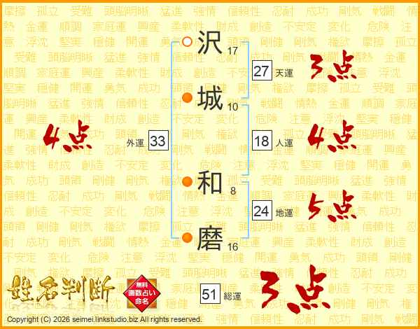 沢(17画)城(10画) 和(8画)磨(16画)