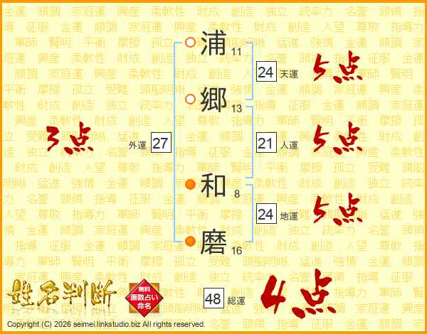 浦郷和磨さんの総運は48画の4点!