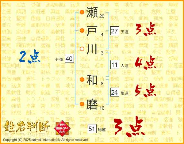 瀬戸川和磨さんの天運は27画の3点!