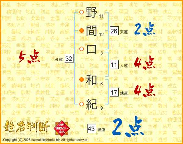 野間口和紀さんの人運は11画の4点!