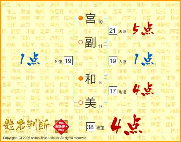 宮副和美さんの総運は38画の4点!
