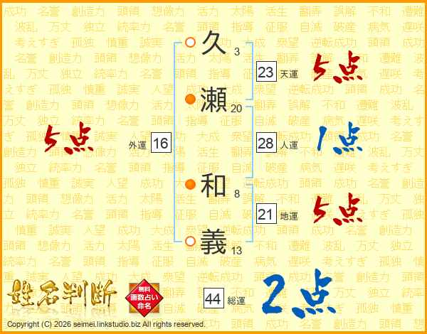 久(3画)瀬(20画) 和(8画)義(13画)