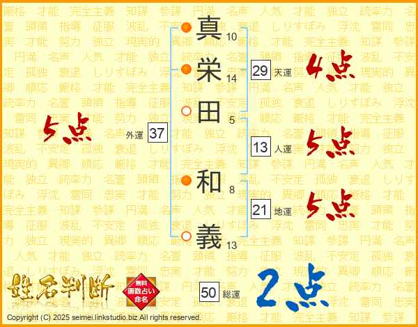 真(10画)栄(14画)田(5画) 和(8画)義(13画)