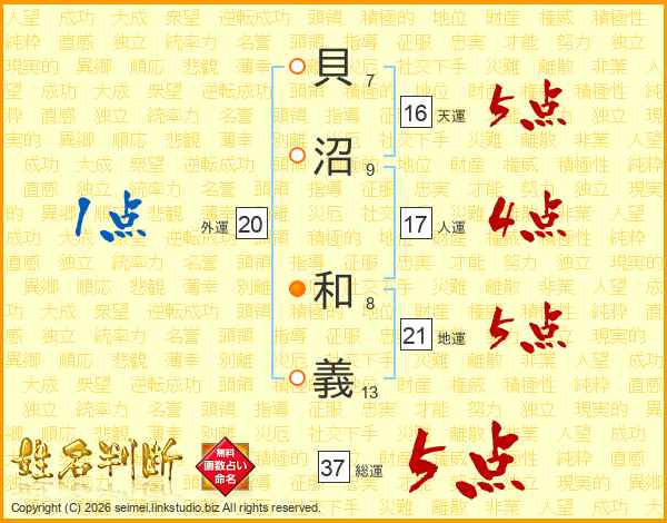 貝沼和義さんの総運は37画の5点!