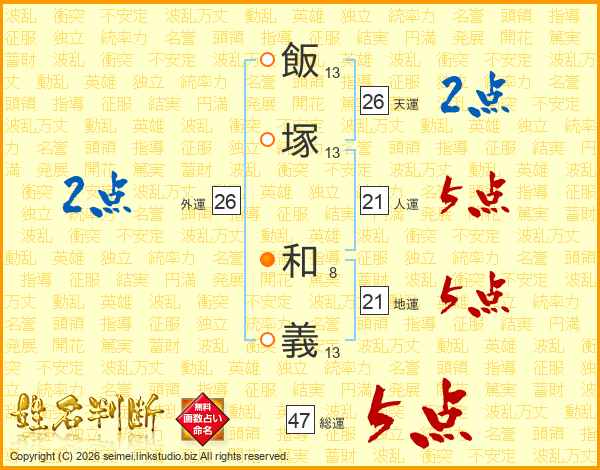 飯塚和義さんの天運は26画の2点!