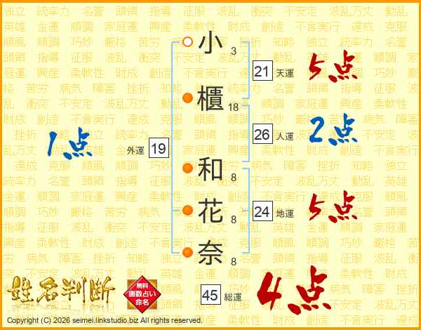 小(3画)櫃(18画) 和(8画)花(8画)奈(8画)