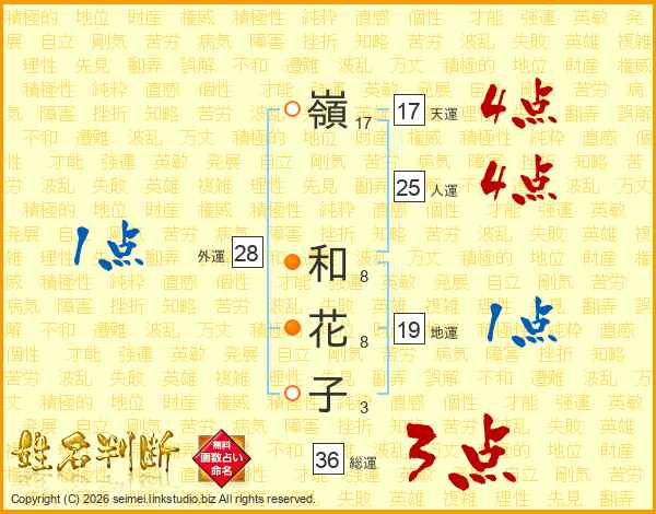 嶺和花子さんの天運は17画の4点!