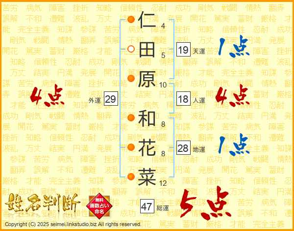 仁田原和花菜さんの総運は47画の5点!