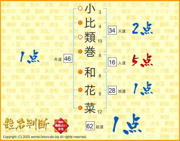 小(3画)比(4画)類(19画)巻(8画) 和(8画)花(8画)菜(12画)