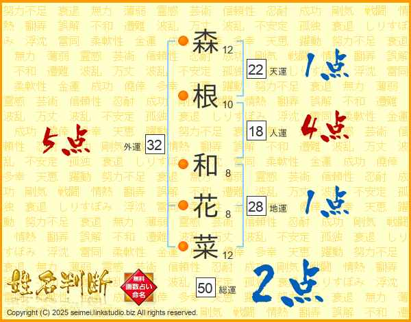 森根和花菜さんの外運は32画の5点!