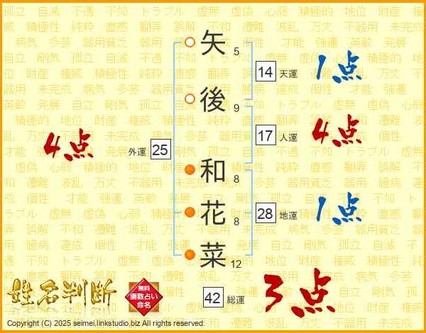 矢後和花菜さんの天運は14画の1点!