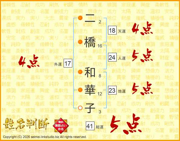 二橋和華子さんの総運は41画の5点!