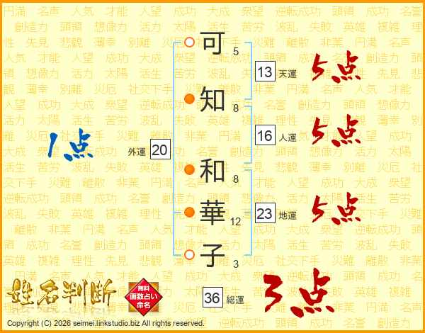 可知和華子さんの地運は23画の5点!