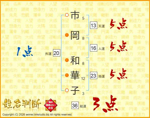 市岡和華子さんの天運は13画の5点!