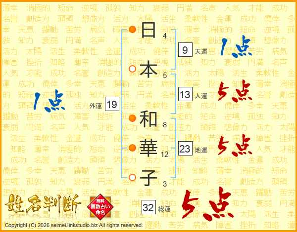 日本和華子さんの総運は32画の5点!