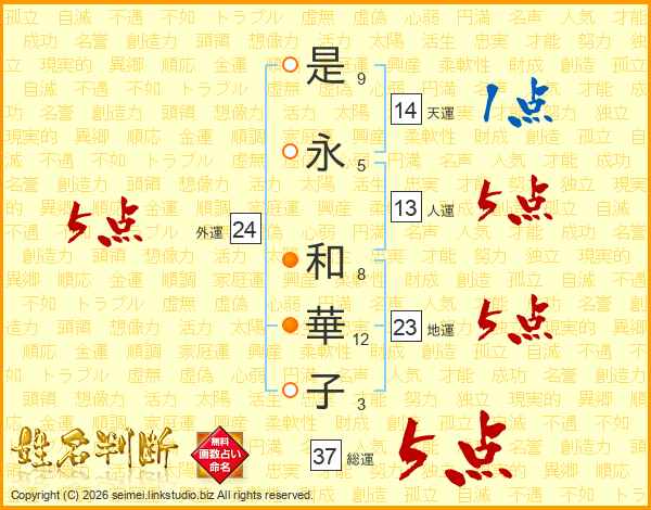 是永和華子さんの総運は37画の5点!
