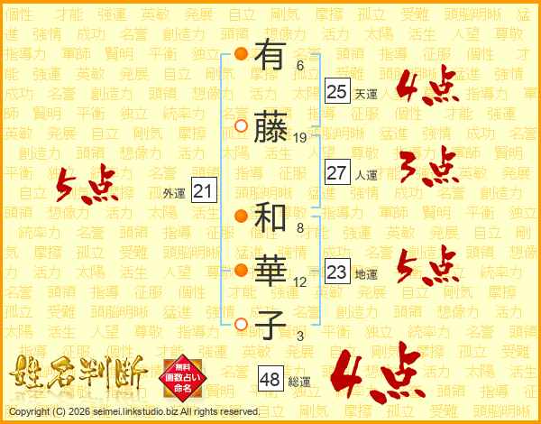 有藤和華子さんの天運は25画の4点!