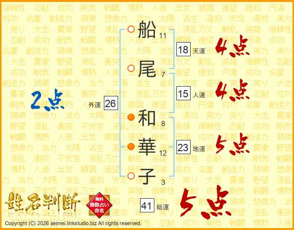 船尾和華子さんの総運は41画の5点!