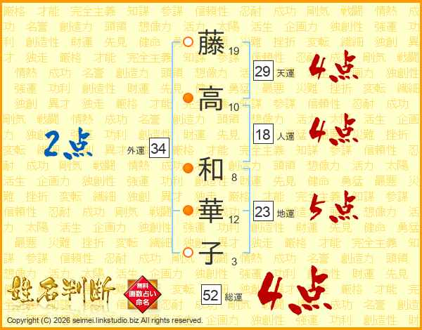 藤高和華子さんの総運は52画の4点!
