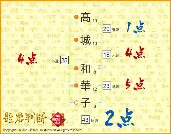 髙(10画)城(10画) 和(8画)華(12画)子(3画)