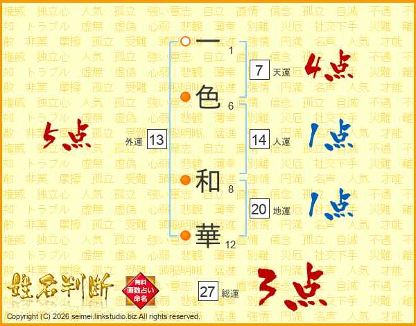 一(1画)色(6画) 和(8画)華(12画)