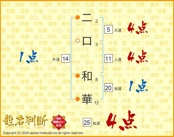 二口和華さんの人運は11画の4点!