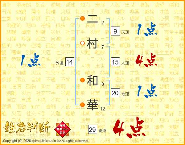 二村和華さんの総運は29画の4点!