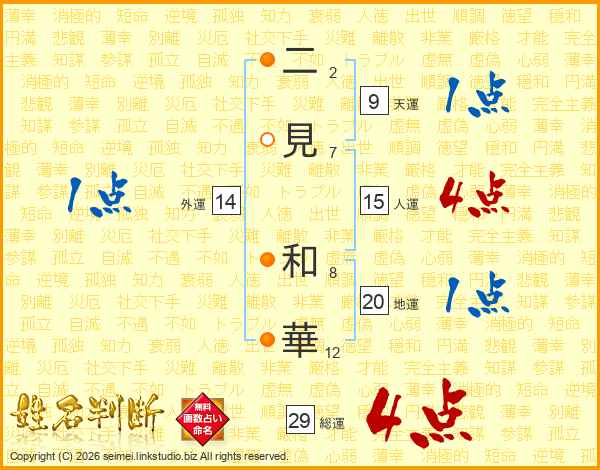 二見和華さんの総運は29画の4点!