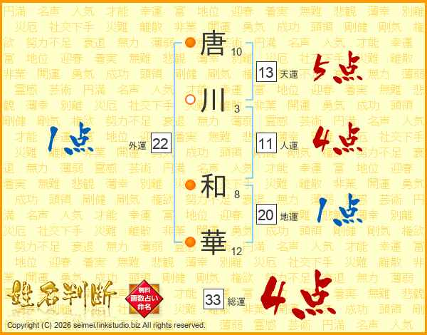 唐川和華さんの総運は33画の4点!