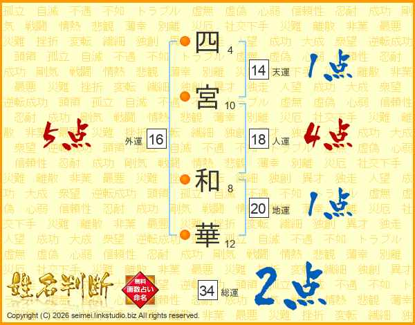 四宮和華さんの総運は34画の2点!