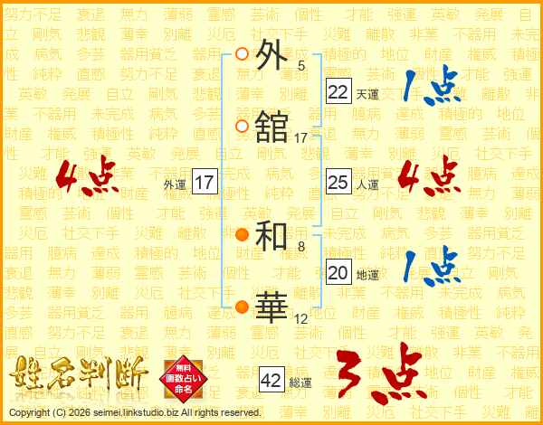 外舘和華さんの外運は17画の4点!