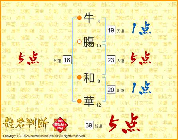 牛膓和華さんの総運は39画の5点!