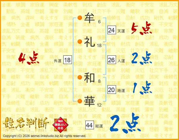 牟礼和華さんの総運は44画の2点!