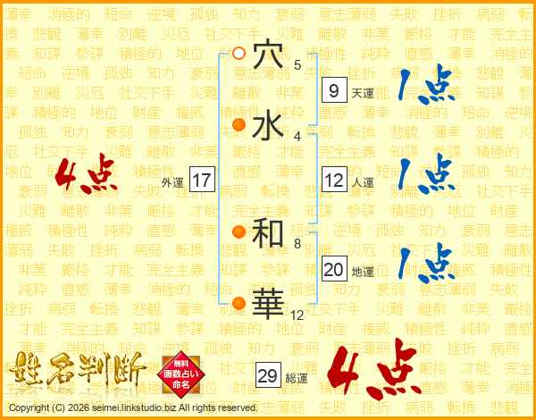 穴水和華さんの総運は29画の4点!