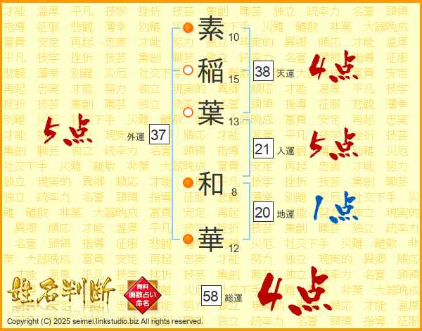素稲葉和華さんの総運は58画の4点!