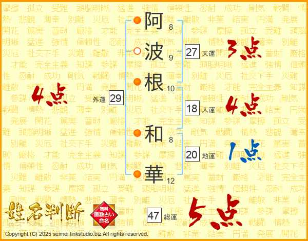 阿波根和華さんの総運は47画の5点!