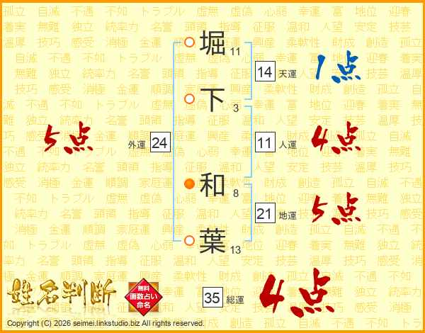 堀下和葉さんの総運は35画の4点!