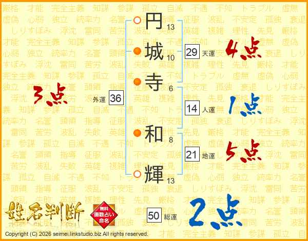 円城寺和輝さんの総運は50画の2点!