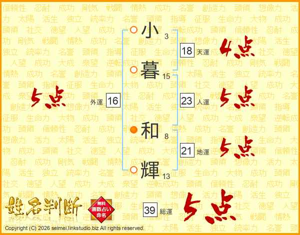 小暮和輝さんの総運は39画の5点!