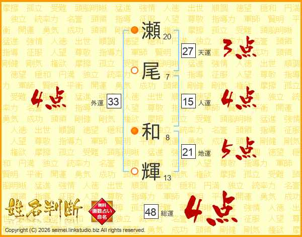 瀬尾和輝さんの総運は48画の4点!