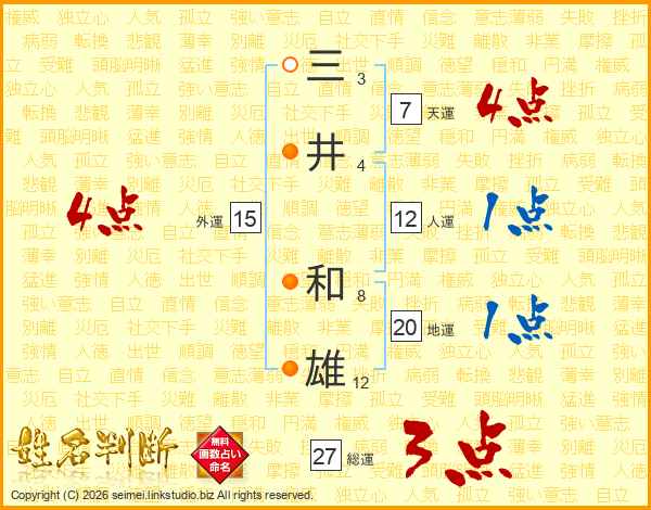 三(3画)井(4画) 和(8画)雄(12画)