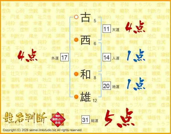 古西和雄さんの総運は31画の5点!