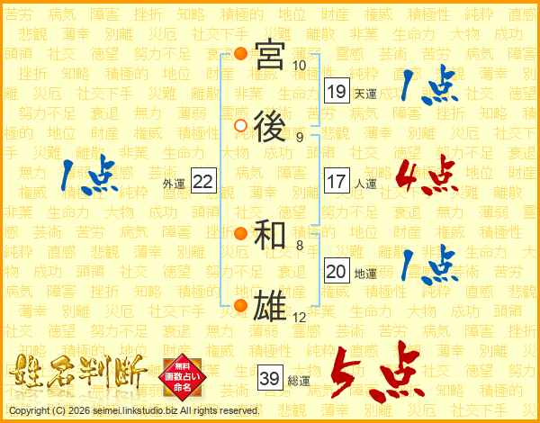 宮後和雄さんの総運は39画の5点!
