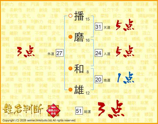 播磨和雄さんの天運は31画の5点!