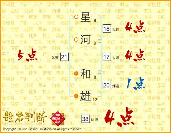 星河和雄さんの総運は38画の4点!